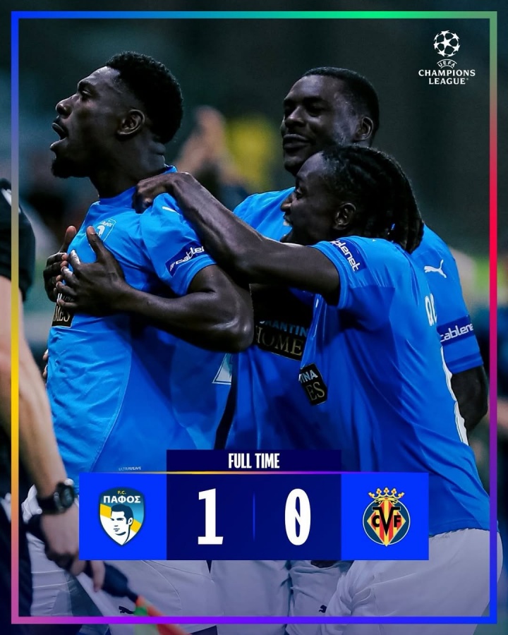 11月06日讯 欧冠第4轮,塞浦路斯球队帕福斯主场作战 1-0战胜比利亚雷亚尔,这支欧冠新军取得了队史欧冠正式比赛的首胜。
