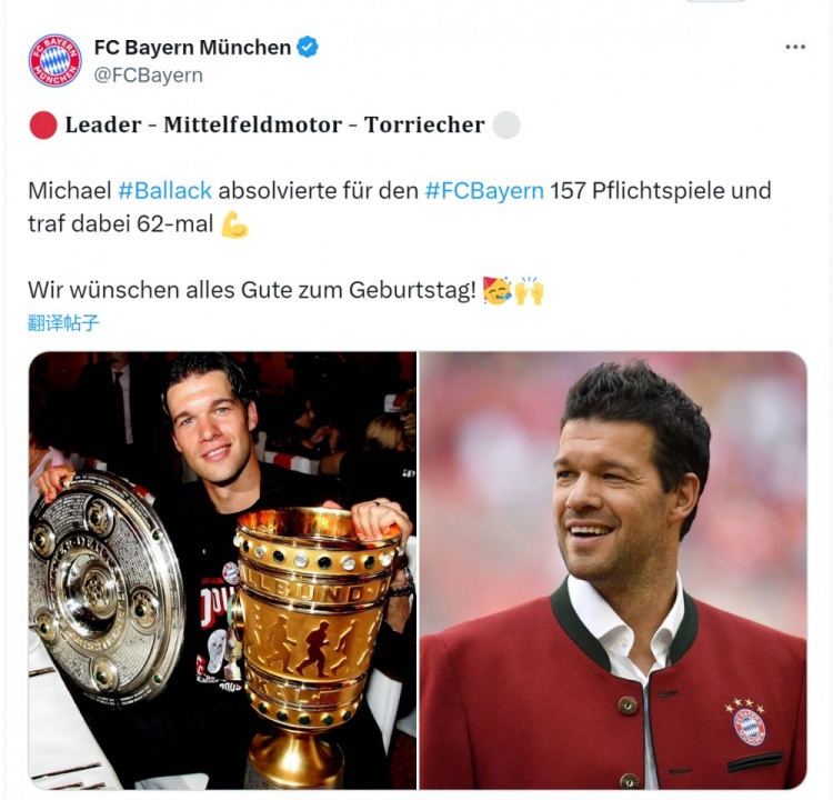 播吧9月26日讯 今天是德国足坛名宿巴拉克的49岁生日,老东家拜仁官方为他送上祝福。