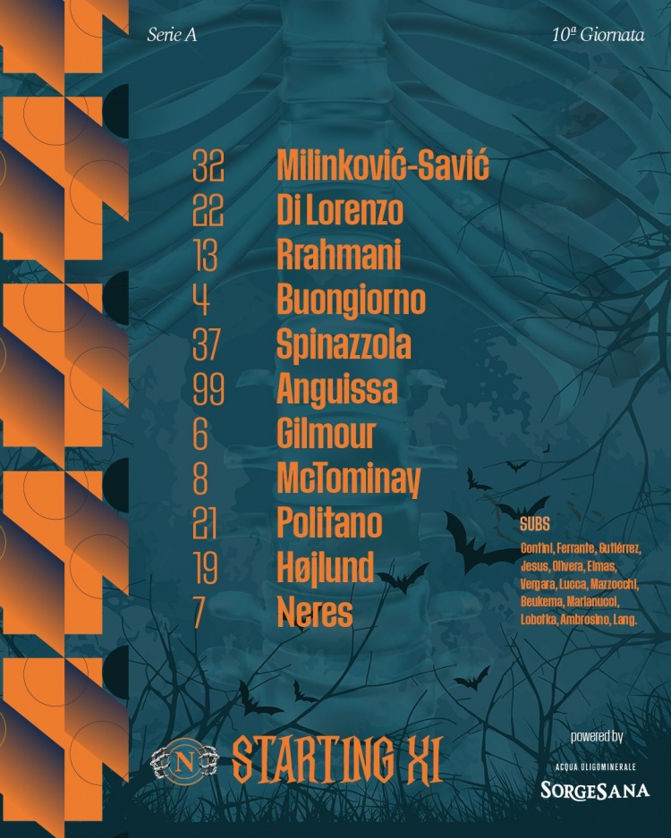 32-米林科维奇-萨维奇、22-迪洛伦佐、13-拉赫马尼、4-布翁乔尔诺、37-斯皮纳佐拉、99-安古伊萨、6-吉尔莫、8-麦克托米奈、21-波利塔诺、19-霍伊伦、7-内雷斯