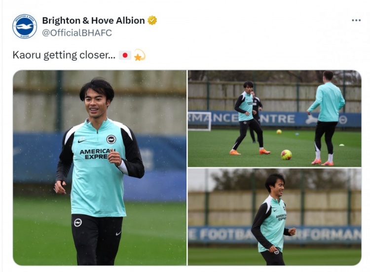 布莱顿社媒晒出三笘薫的照片,确认这位日本攻击手复健 练习 ,英超比赛在线观看无插件配文:“三笘薫距离复出更近了。”
