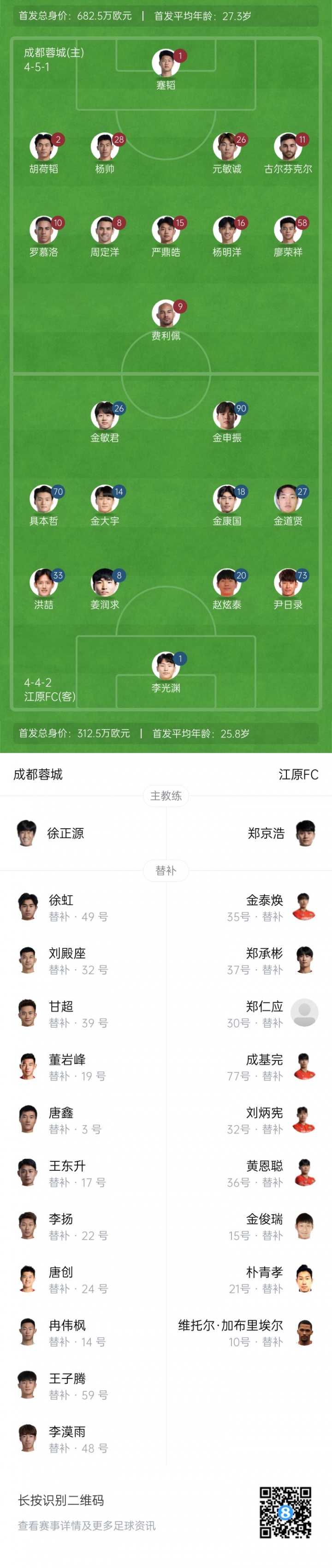 成都蓉城杆位:1-蹇韬、2-胡荷韬、11-古尔芬克尔、26-元敏诚、28-杨帅、8-周定洋、10-罗慕洛、15-严鼎皓、16-杨明洋、58-廖荣祥、9-费利佩