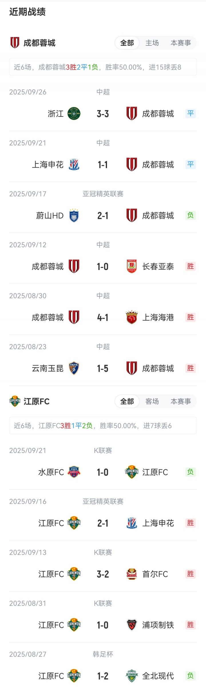 本场赛事 是成都蓉城首个亚冠正式比赛主场作战 。蓉城首轮客场应战 不敌蔚山HD,暂排名亚冠第8;江原FC主场作战 2-1战胜上海申花,积3分排名亚冠第4。