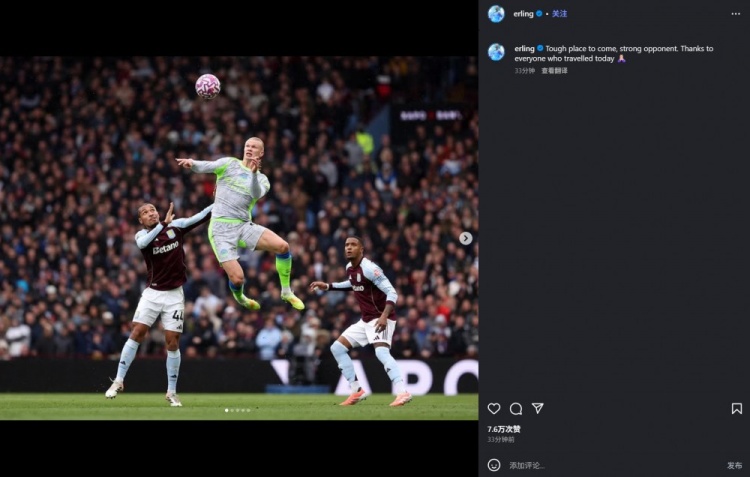 赛后球员更新社媒,英超直播写道:艰难的客场应战 ,强大的对手,感谢今天到场的每一位🙏
