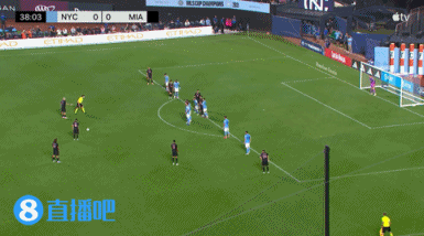 第29分钟,纽约城前场球员梅尔考连过迈阿密国际后防两人,打门击中立柱!差点完成一条龙↓