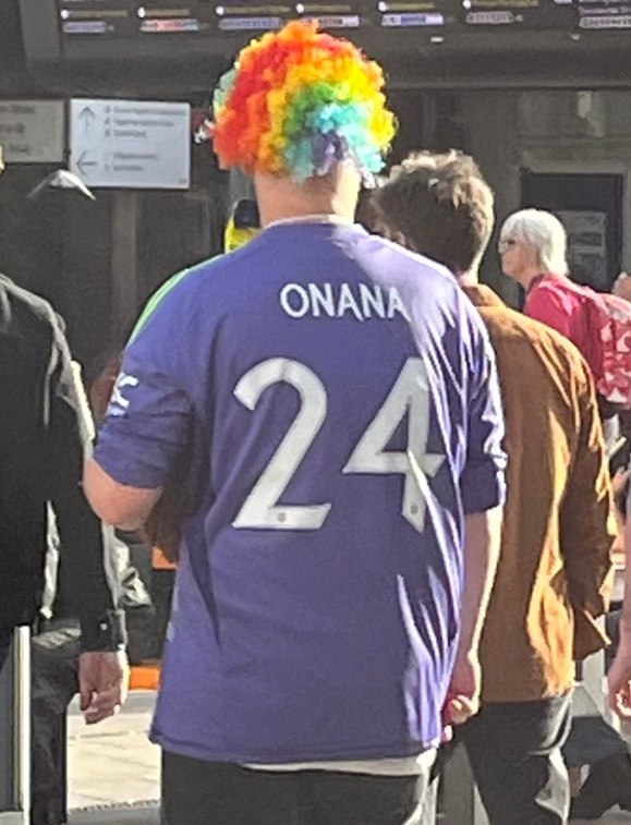 9月28日讯 在个人社媒,曼联跟队记者Samuel Luckhurst晒出一位球迷身穿奥纳纳球迷的照片。