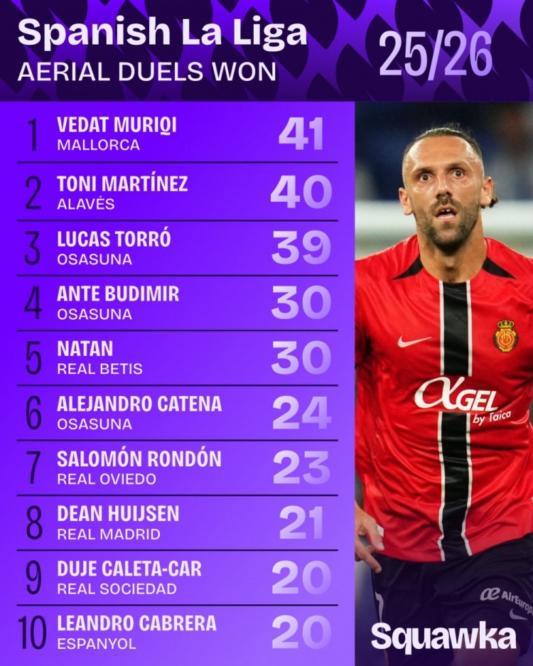 1、维达特-穆里奇(马洛卡):41次