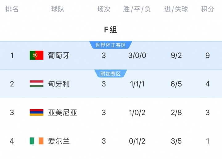 葡萄牙则3轮全胜积9分领跑 匈牙利5分,今夜葡萄牙若击败匈牙利,仅剩2轮领跑 8分的情况也足以确保他们提前晋级下一轮 。